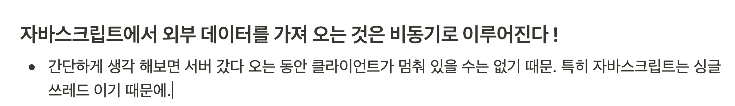 - 장점 : 페이지 리로드의 경우 전체 리소스를 다시 불러와야하는데 모두 재요청할 경우 불필요한 리소스 낭비가 발생하지만 비동기식 방식을 이용할 경우 필요한 부분만 불러와 사용가능