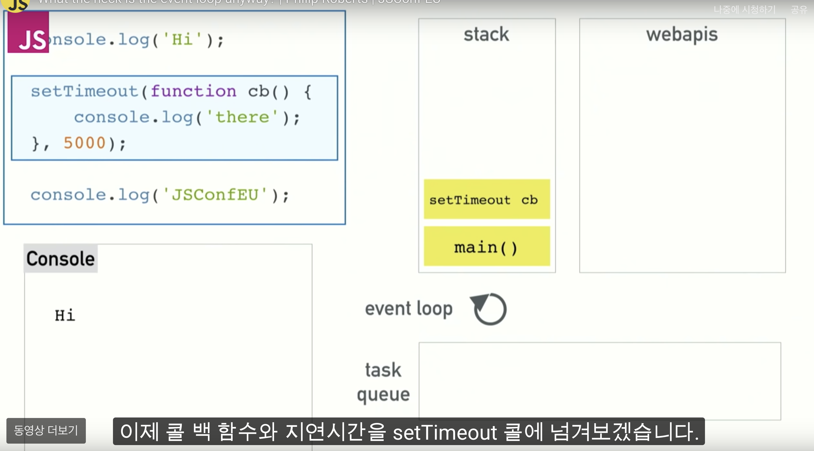 - 위에서 말했듯 자바스크립트는 싱글쓰레드기반의 언어라 순서대로 읽어나가기 때문에 예상대로라면 하나의 함수가(또는 라이브러리같은 것) 다 실행이 될때까지 아무것도 못하는 상태여야하는데,