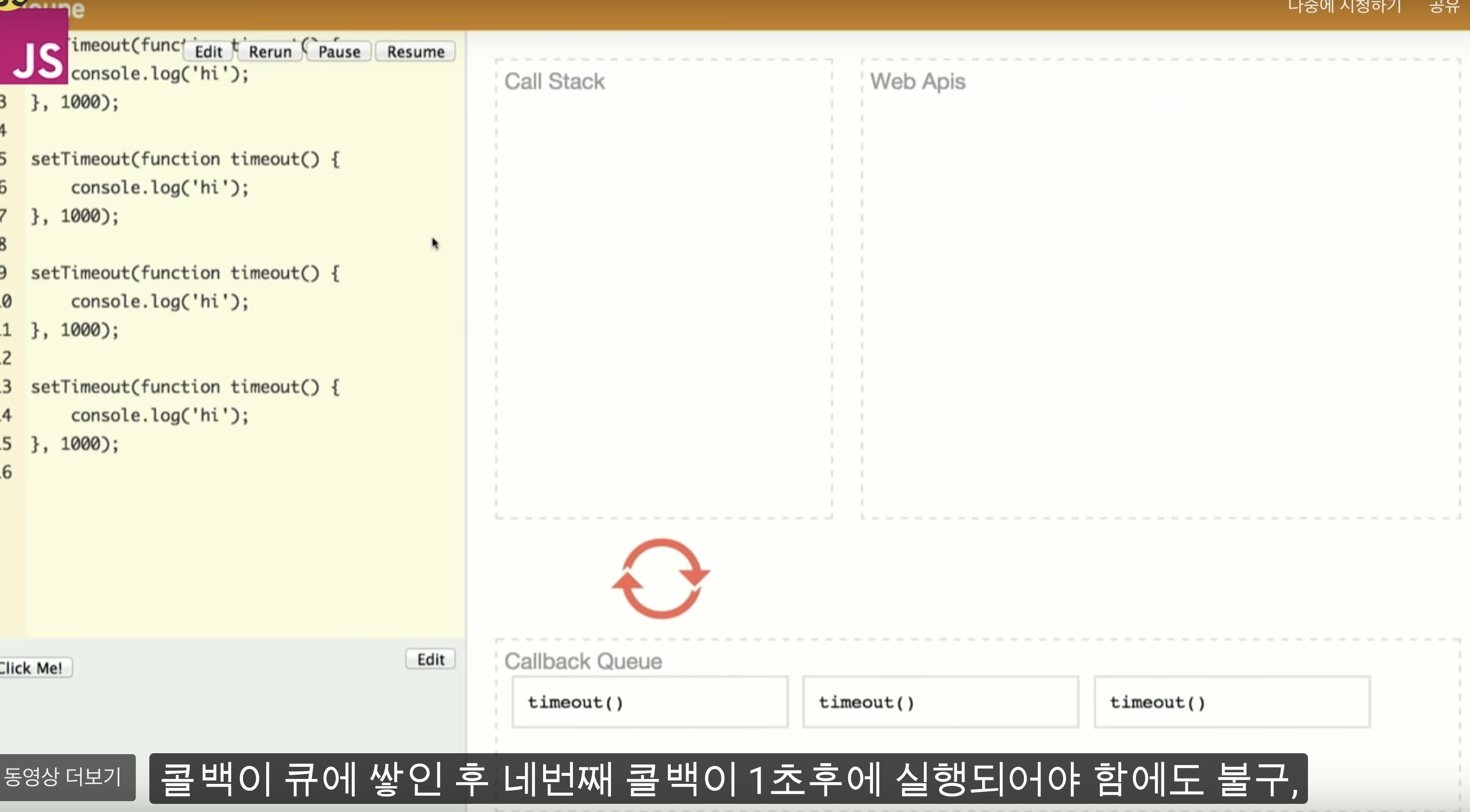 - 콜백함수는 Callback Queue를 돌고 나오고 그냥 함수는 call Stack으로 들어갔다가 나온다