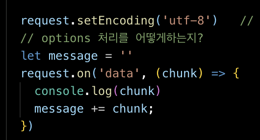 2) 아래서 두번째줄을 chunk => chunk.toString()