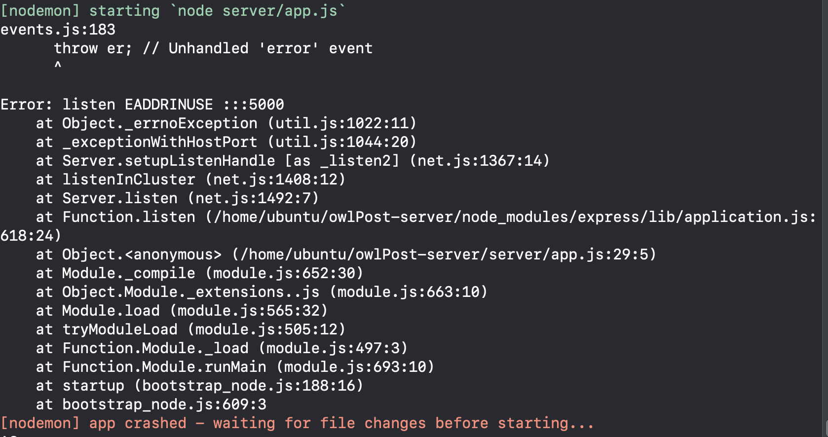 Jveloper 2019. 7. 15. 11:41server 가 안켜질때의 에러