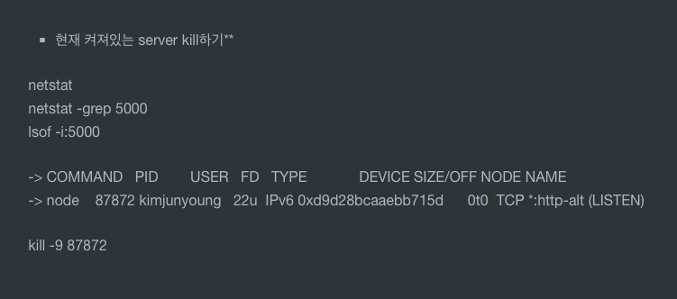 * kill로 안된다면 killall을 이용해서 node로 켰던 server 다 죽이자