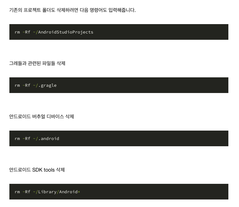 그래서 내가 뭔가 잘못했나 싶어서 이걸 지워야겠구나,, 다시 깔아야겠다 생각을해서 깔끔하게 안드로이드 스튜디오 지우는 방법을 찾아봤다