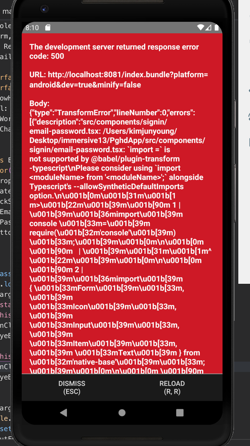 2019. 08. 02 이머시브 수업 10주차 - 5일 (react native android debugging error)