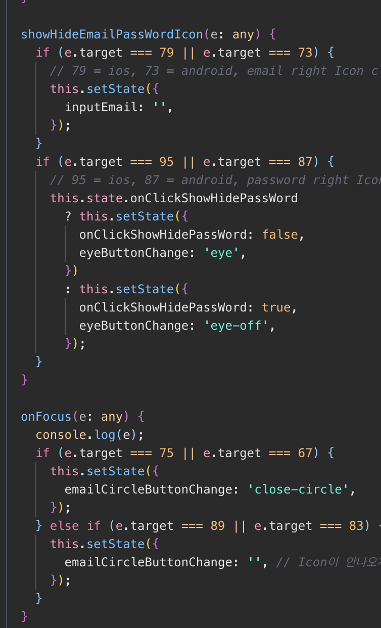 2019. 08. 03 이머시브 수업 10주차 - 6일 (react native event.target 을 쓰지 말아야하는이유 & input placeHolder에 색깔 입히기 & 화면에 진입했을때 input에 focusing 맞추기)