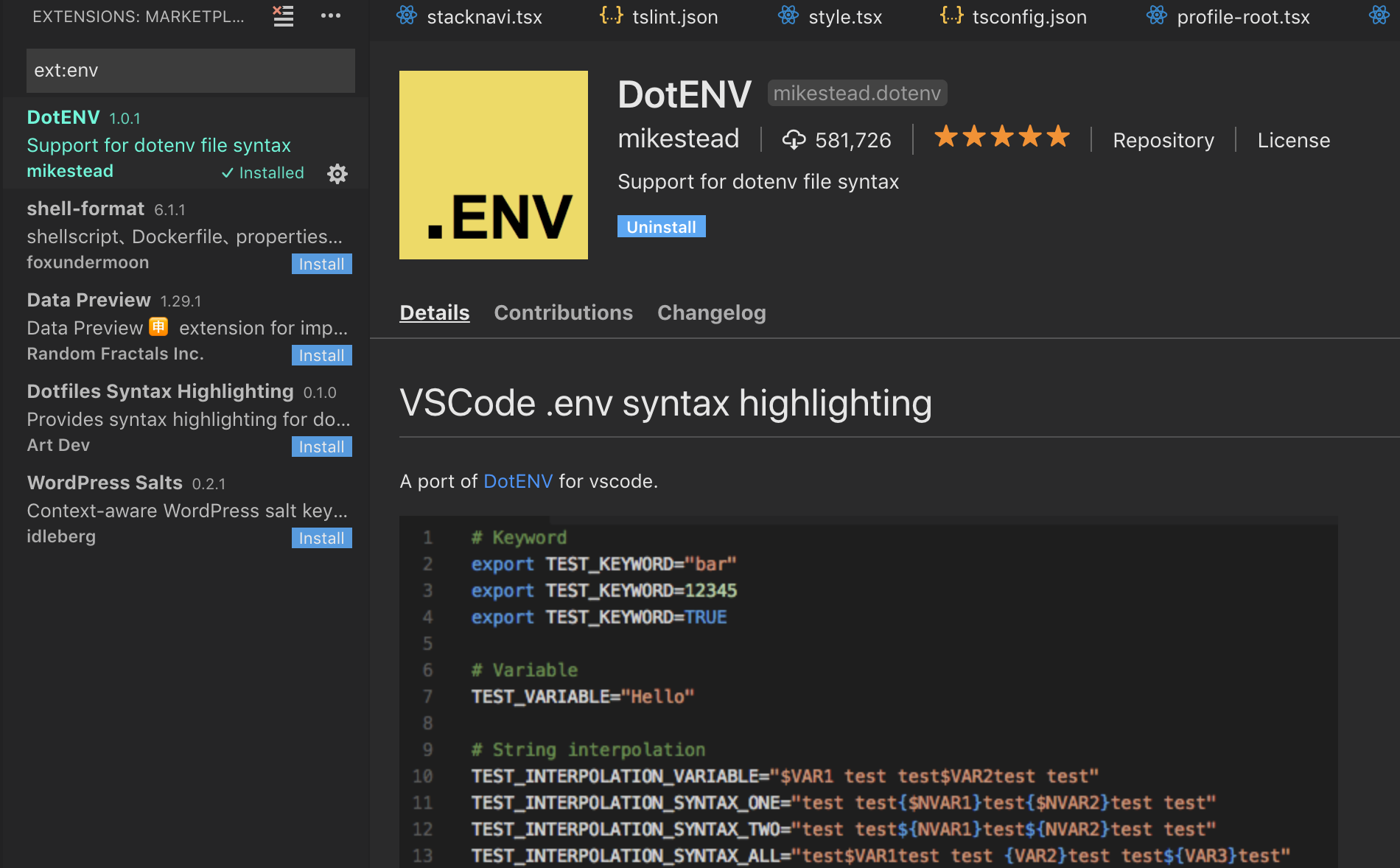 마침 VScode에 이런 extension이 있었는데 이게 뭐냐하면 .env.js 이렇게쓰지 않고 .env로만 적어도 코드를 읽어주는 녀석이었다