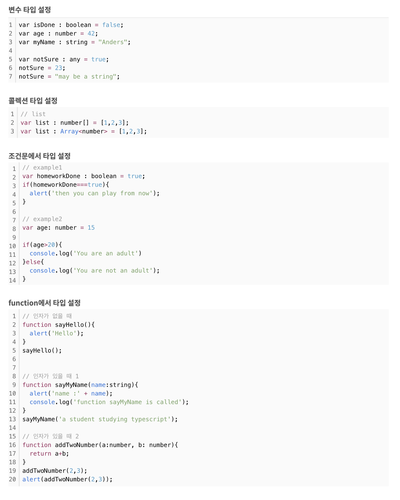 - 타입 기반 언어로써 "타입스크립트 = 자바스크립트 + 타입"