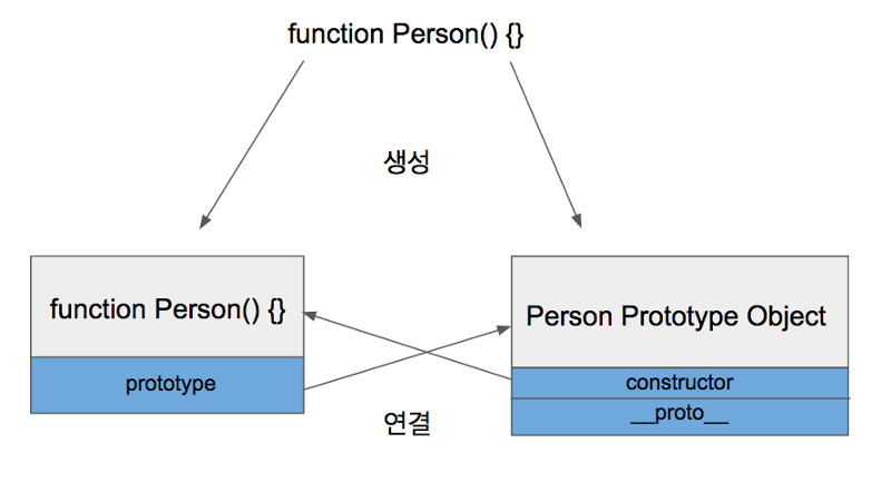 함수를 정의하면 함수만 생성되는 것이 아니라 Prototype Object도 같이 생성이 된다