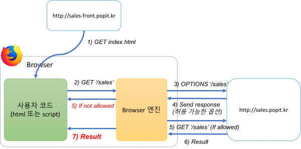 브라우저는 접근할 리소스를 가지고 있는 서버에게 preflighted 요청을 보냄