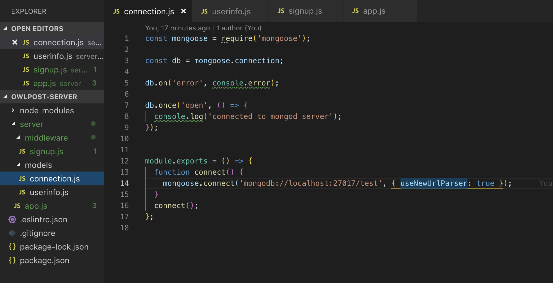 mongoose 와 내 local 환경의 mongoDB 와 이어주는 작업
