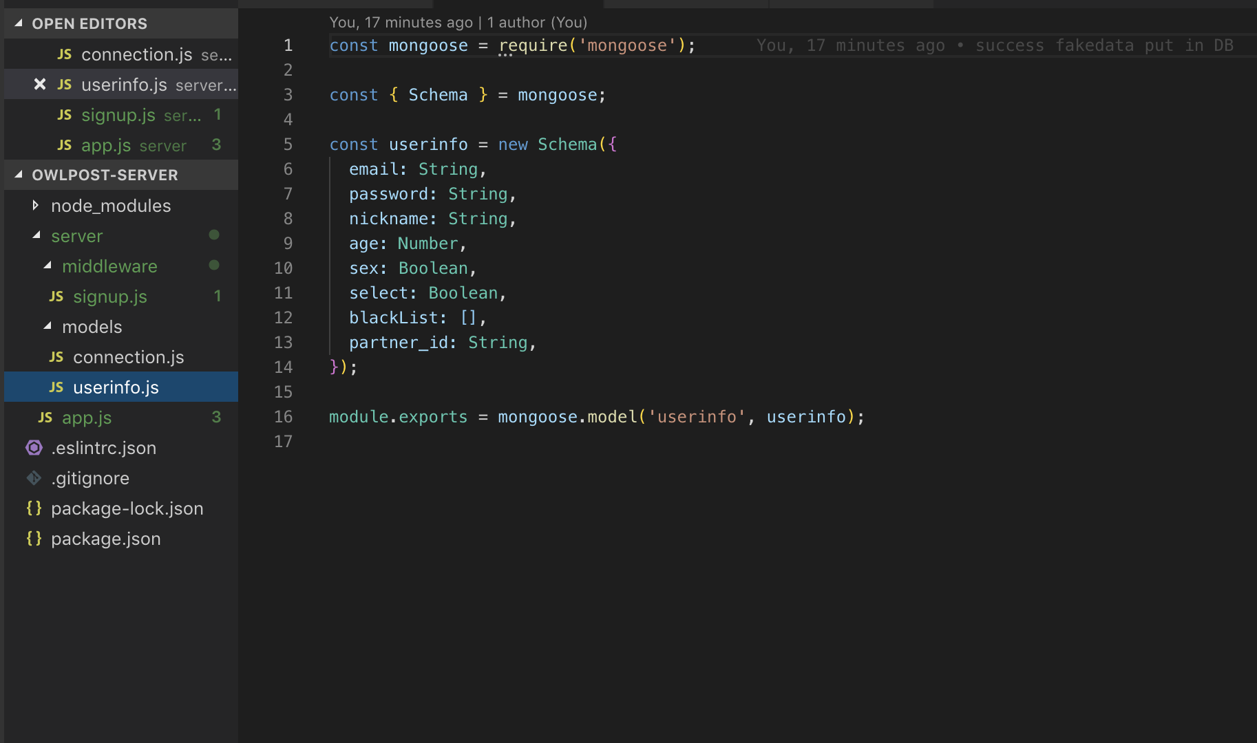 -> terminal 환경에서 작성을 하면 vscode에 적혀있던 모든 fake data를 실행시키고 새로운 파일을 만들어서 그거에 관련된 코드도 작업해주는거 같은데 위의 키워드를 사용해서 나중에 공부해보자