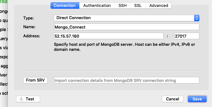 8. 여기까지 한 후에 ROBO 3T 라는 GUI tool을 사용해서 확인해보면 내가 만들었던 AWS EC2주소로