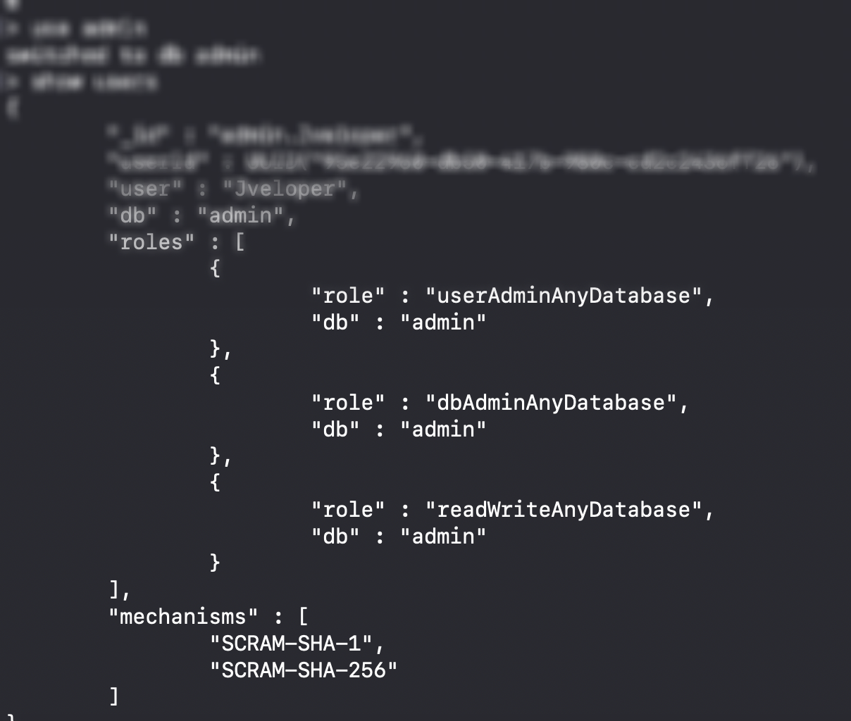 우선 mongoDB를 키고 admin( use admin 을 쳐보자 )에서 나의 계정이 있는지없는지 (show users 를 쳐보자) 확인하자